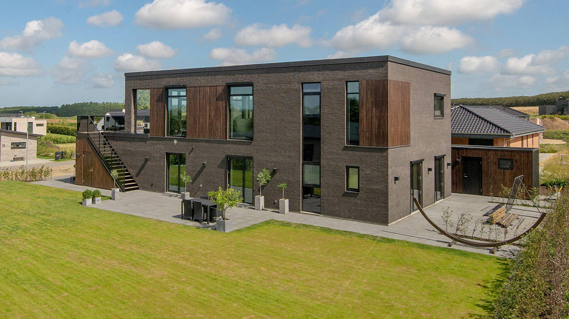 Tilbage i 2018 tegnede vi denne fantastiske villa på 231 m2 fordelt over to plan med en integreret dobbelt garage på 59 m2 i husets underetage samt et udhus på 16 m2.